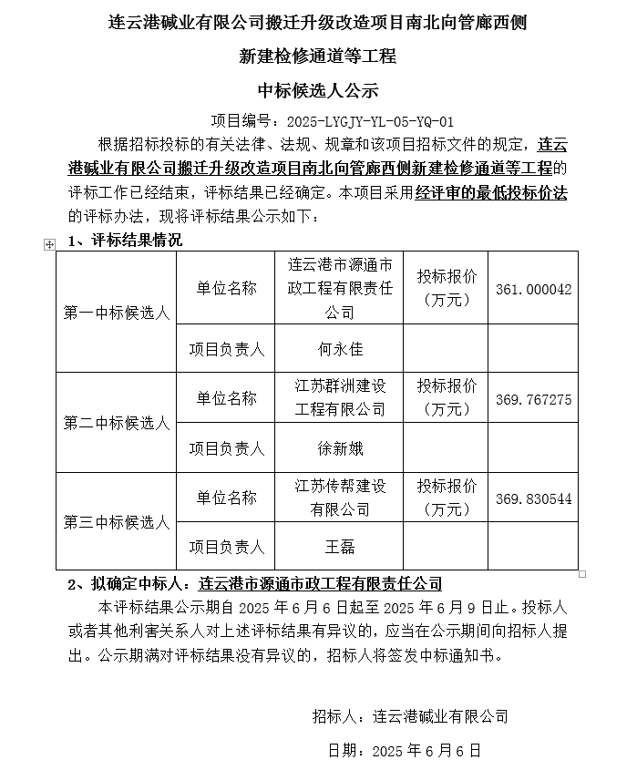 搬遷升級(jí)改造項(xiàng)目南北向管廊西側(cè)新建檢修通道等工程中標(biāo)候選人公示
