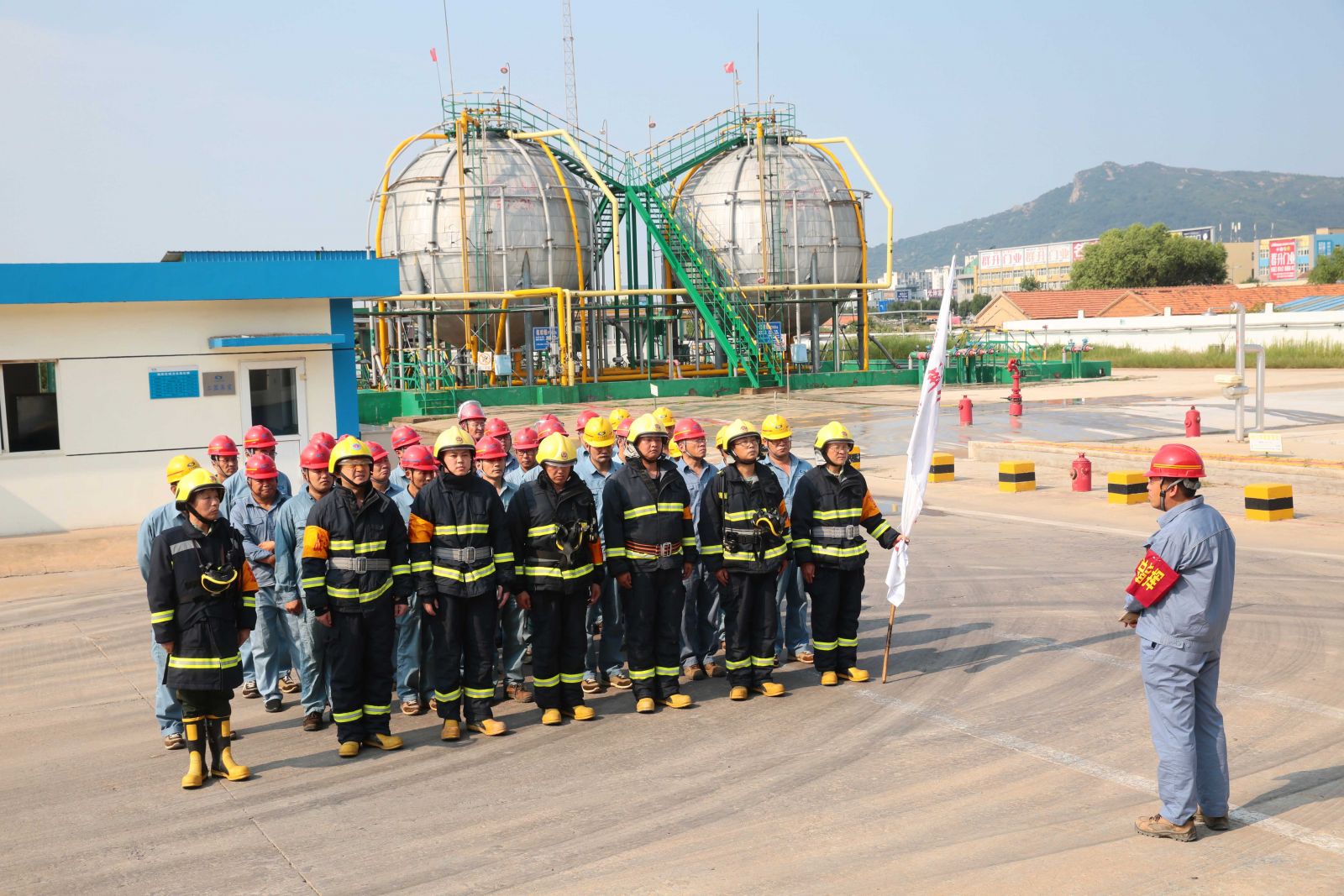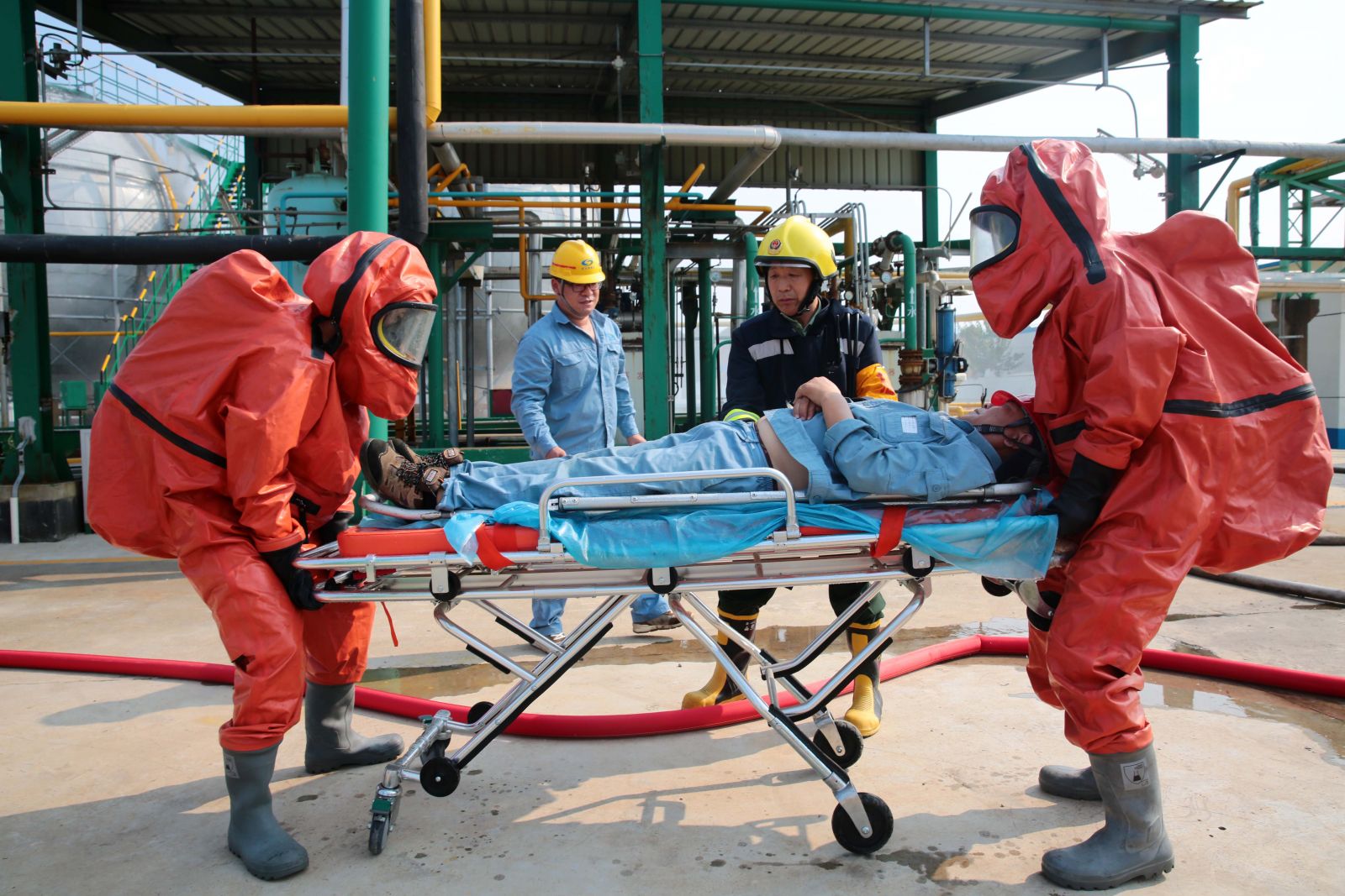 為檢驗公司應(yīng)急救援時各環(huán)節(jié)的協(xié)調(diào)能力和應(yīng)急救援預(yù)案的可操作性,提高應(yīng)急人員在緊急情況下妥善處置突發(fā)事件的實戰(zhàn)能力,9月5日,公司以“液氨庫B球罐底部發(fā)生泄漏,現(xiàn)場當班工人中毒”為假想事故,在液氨庫舉行秋季危險化學品生產(chǎn)安全事故應(yīng)急救援演練。