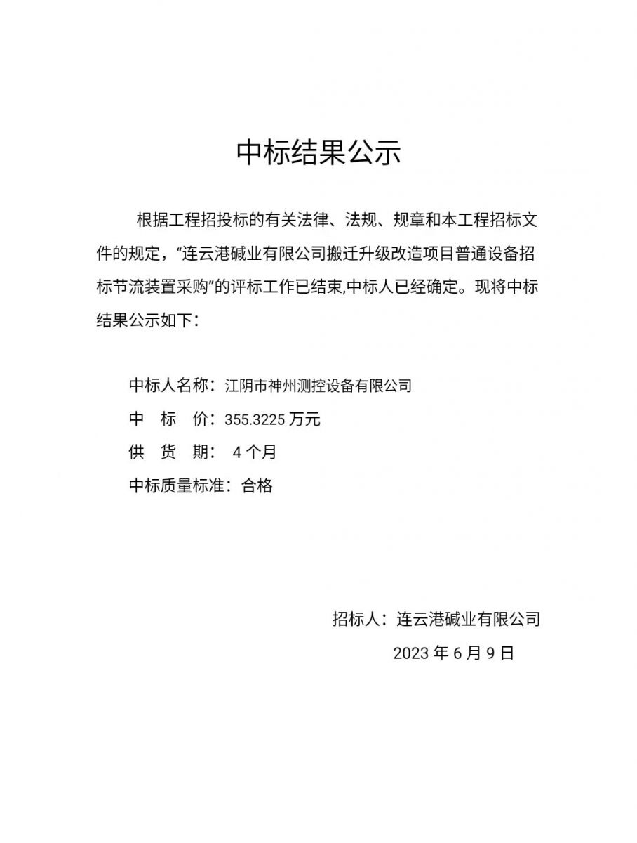 節(jié)流裝置采購中標(biāo)公示