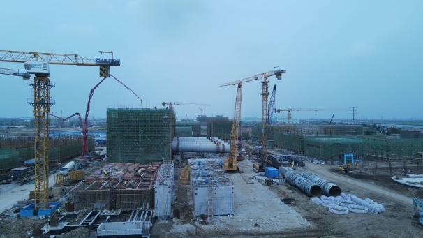 ⑸合成氨二標(biāo)段271原料煤儲(chǔ)運(yùn)破碎樓三層澆筑;#1轉(zhuǎn)運(yùn)站五層腳手架搭設(shè),鋼筋綁扎;#2轉(zhuǎn)運(yùn)站三層腳手架、模板拆除,四層腳手架搭設(shè),鋼筋綁扎,支模;汽車卸煤區(qū),煤筒倉(cāng)外側(cè)土方土方挖取,圍檁安裝;820合成氨循環(huán)水站清凈廢水池鋼板樁拔除;塔下水池1支撐架搭設(shè),鋼筋綁扎;塔下水池2支撐架搭設(shè),對(duì)拉螺栓割除;吸水池1基坑開挖準(zhǔn)備;711煤漿制備二層腳手架搭設(shè),梁板柱支模,鋼筋綁扎,埋件安裝;762壓縮機(jī)廠房基礎(chǔ)短柱防腐;剩余設(shè)備基礎(chǔ)鋼筋綁扎,模板支設(shè);763空分后備系統(tǒng)上部結(jié)構(gòu)鋼筋綁扎,預(yù)埋件安裝,支模;764儀表空壓站基礎(chǔ)墻防腐;831空分變電所首層結(jié)構(gòu)鋼筋綁扎,埋件安裝,支模;761冷箱基礎(chǔ)冷箱設(shè)備帶板拼接施工;膨脹機(jī)房上部結(jié)構(gòu)鋼筋綁扎預(yù)埋螺栓安裝;712氣化框架立柱腳手架搭設(shè),鋼筋綁扎;灌注樁施工;樁基大小應(yīng)變檢測(cè);基坑開挖準(zhǔn)備;塔吊附近承臺(tái)基坑回填;842空分機(jī)柜間板墻鋼筋綁扎;713渣水處理集渣池支撐架搭設(shè),鋼筋綁扎,支模;設(shè)備基礎(chǔ)錨固鋼筋焊接。
