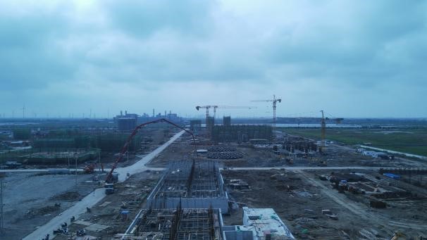 ⑵聯(lián)堿二標(biāo)段611鹽硝車間破樁完成;523結(jié)晶工段框架6~10軸一層梁驗(yàn)收完成;614真空制鹽循環(huán)水站外排水池土方回填;562聯(lián)堿循環(huán)水站框架西側(cè)池壁驗(yàn)收完成,水池破樁;524干銨工段7~12軸一層模板支撐架搭設(shè);503變電所3外架搭設(shè),內(nèi)架開始搭設(shè);525包裝及儲運(yùn)8-16軸梁板模板鋪設(shè)、1-7軸內(nèi)架搭設(shè);506機(jī)柜間1一層梁板柱梯澆筑;601變電所2外架搭設(shè)。