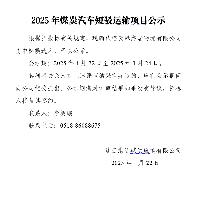 2025年煤炭汽車短駁運(yùn)輸項目公示