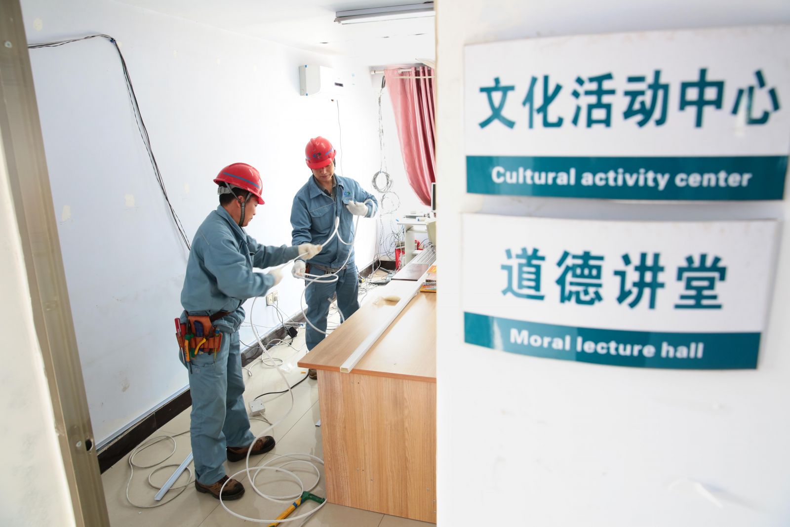3月28日,公司電儀車間黨支部組織電氣專業(yè)技術(shù)人員到贛榆區(qū)班莊鎮(zhèn)孫凈埠村,為村里的文化活動(dòng)中心和道德講堂排布線路,整理雜亂的電源線,消除用電安全隱患,獲得村民一致好評(píng)。