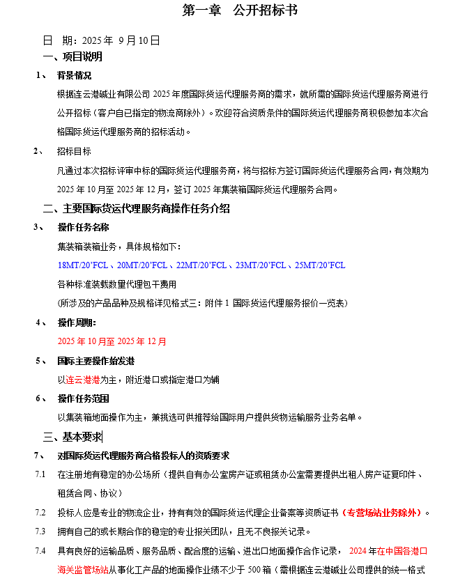 連云港堿業(yè)有限公司集裝箱國際貨運代理服務(wù)商項目招標公告