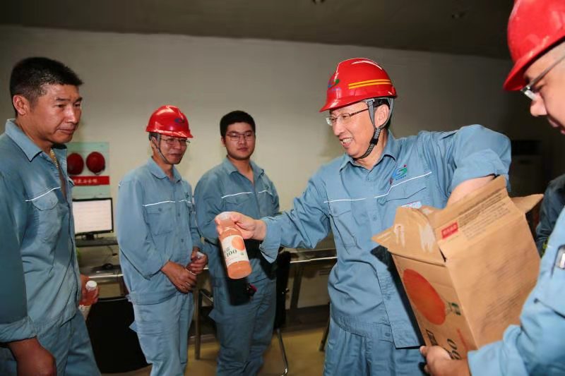 公司領(lǐng)導(dǎo)每到一處,親手將一瓶瓶清涼飲品送到大家手中,與現(xiàn)場人員一一握手,感謝大家在炎炎夏日仍不辭辛勞、堅守崗位,為全面完成各項目標(biāo)任務(wù)所作出的奉獻(xiàn),并叮囑他們在堅守崗位的同時注意安全生產(chǎn),做好防暑降溫工作。他要求各單位要堅持“生命至上、安全發(fā)展”的理念,把各項安全生產(chǎn)防護(hù)措施落實落細(xì),切實保障員工的身體健康,確保各項生產(chǎn)作業(yè)順利進(jìn)行。