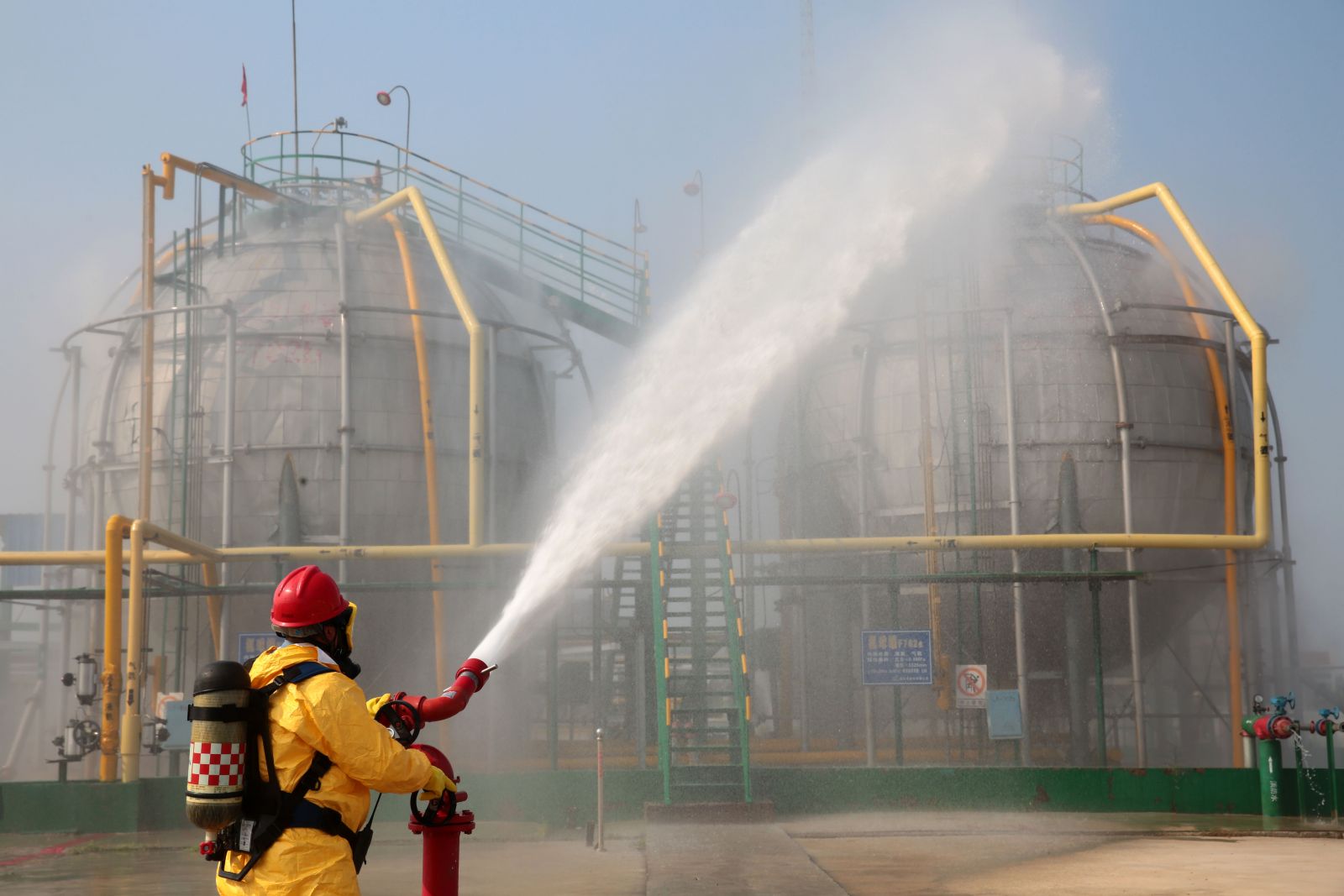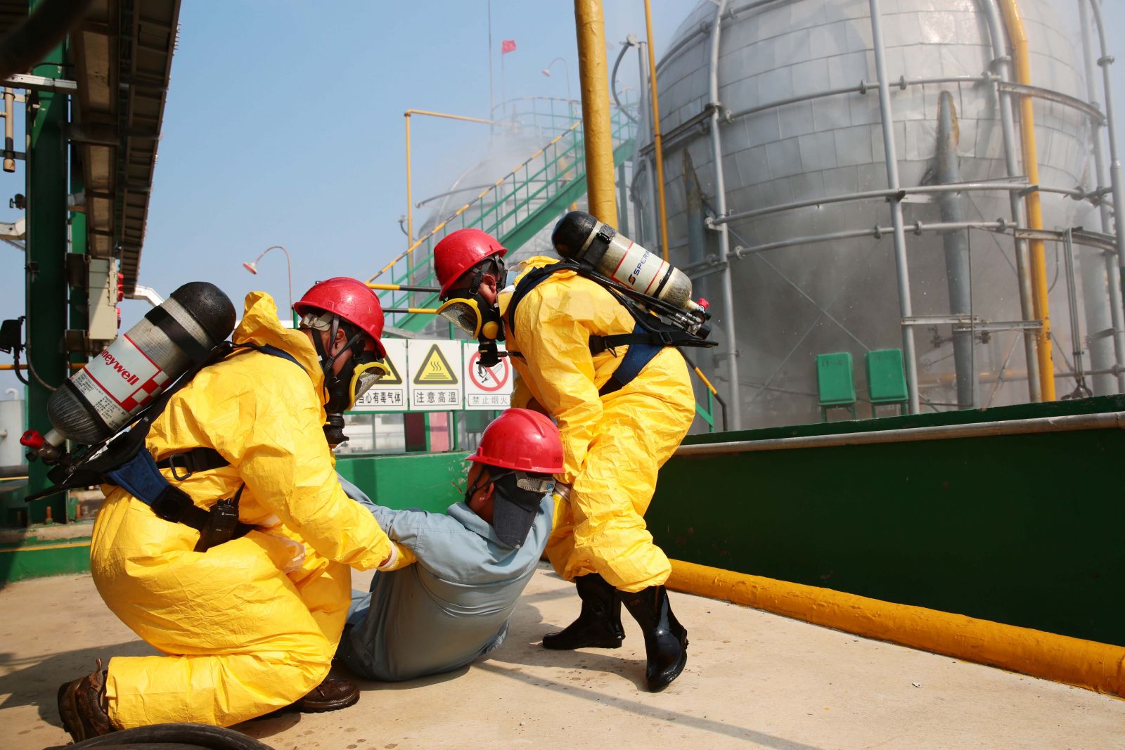 為檢驗公司應(yīng)急救援時各環(huán)節(jié)的協(xié)調(diào)能力和應(yīng)急救援預(yù)案的可操作性,提高應(yīng)急人員在緊急情況下妥善處置突發(fā)事件的實戰(zhàn)能力,9月5日,公司以“液氨庫B球罐底部發(fā)生泄漏,現(xiàn)場當班工人中毒”為假想事故,在液氨庫舉行秋季危險化學品生產(chǎn)安全事故應(yīng)急救援演練。