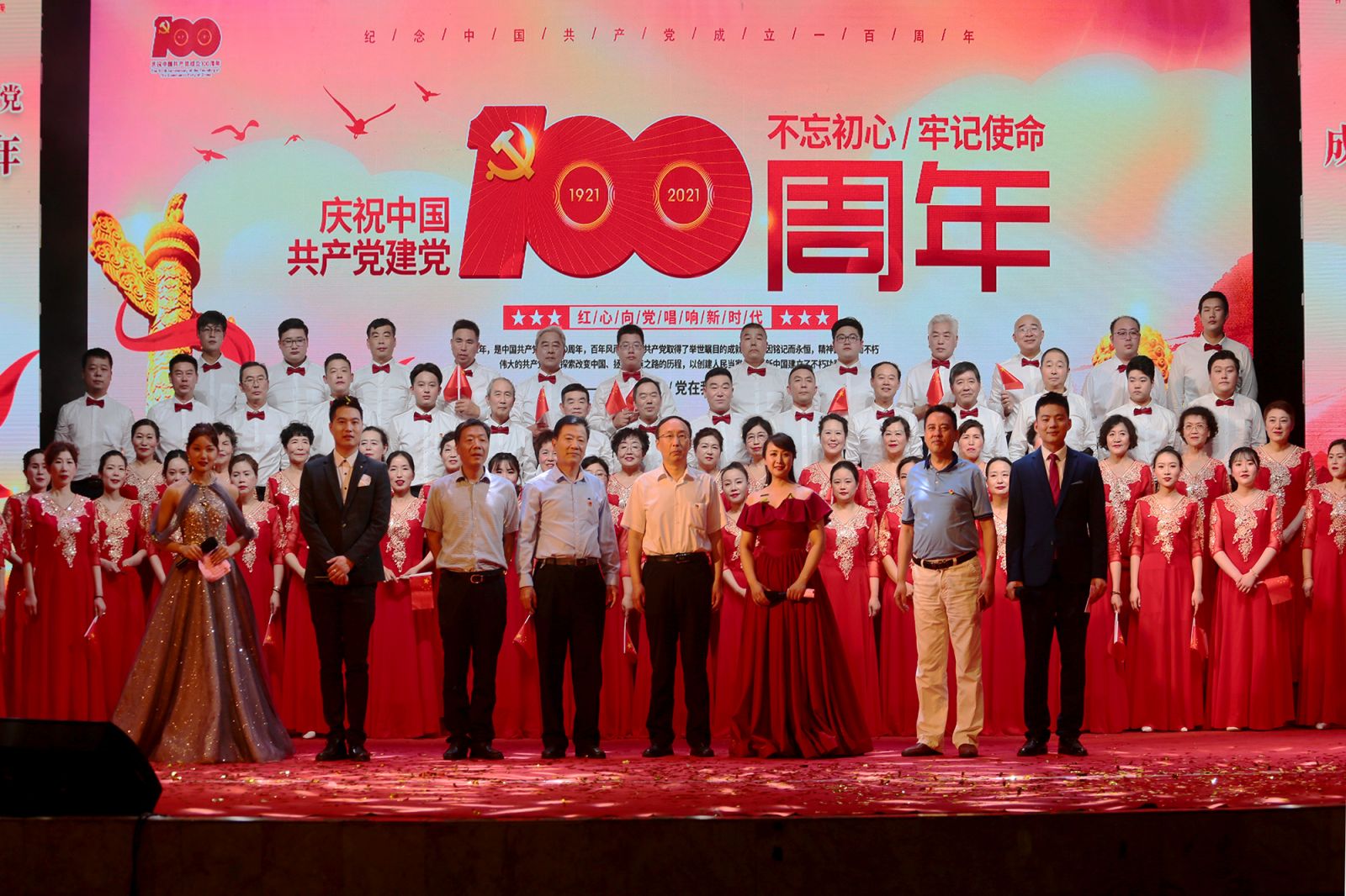 隨后,精彩的文藝匯演展開。舞蹈《南湖的船黨的搖籃》生動再現(xiàn)了黨的一大召開的場景;歌曲聯(lián)唱《歌唱祖國》《紅旗飄飄》《陽光路上》抒發(fā)了濃濃的愛國情懷以及對黨的深深祝福;詩朗誦《沁園春·雪》通過激昂的旋律、磅礴的氣勢,仿佛帶領(lǐng)觀眾回到了那個戰(zhàn)火紛飛的年代,看到了那個指點江山的偉人……最后,在全體齊唱《沒有共產(chǎn)黨就沒有新中國》的旋律中,我公司“慶祝建黨100周年文藝匯演”圓滿結(jié)束。