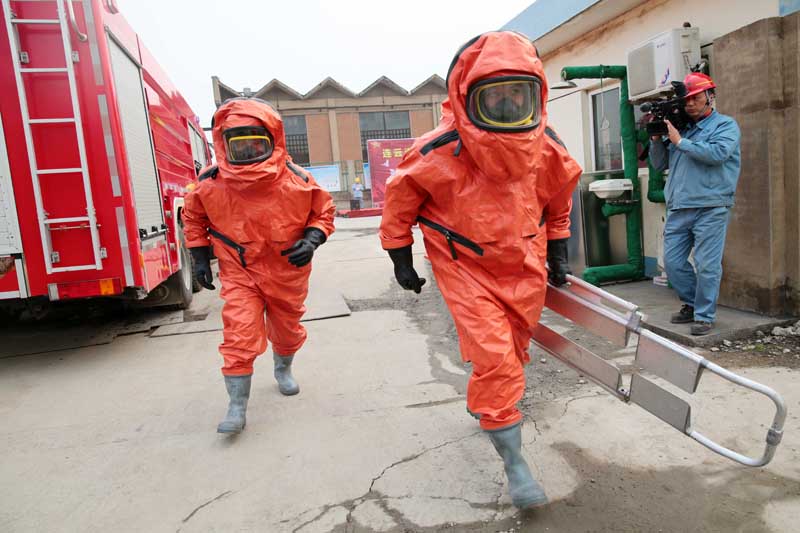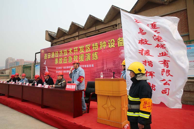 為預防和減少生產(chǎn)安全事故的發(fā)生,檢驗連云港開發(fā)區(qū)市場監(jiān)管局應急預案與企業(yè)應急預案的銜接性,提高應對突發(fā)事故的組織領導、協(xié)調(diào)配合、快速反應、應急處置能力。同時檢驗公司應急預案編制的實用性、可操作性,3月22日,連云港經(jīng)濟技術開發(fā)區(qū)市場監(jiān)管局聯(lián)合堿業(yè)公司組織開展特種設備事故應急演練。市質(zhì)監(jiān)局副局長宋志飚、開發(fā)區(qū)市場監(jiān)管局局長殷元、公司總經(jīng)理、黨委副書記李清菊等現(xiàn)場觀摩演練。