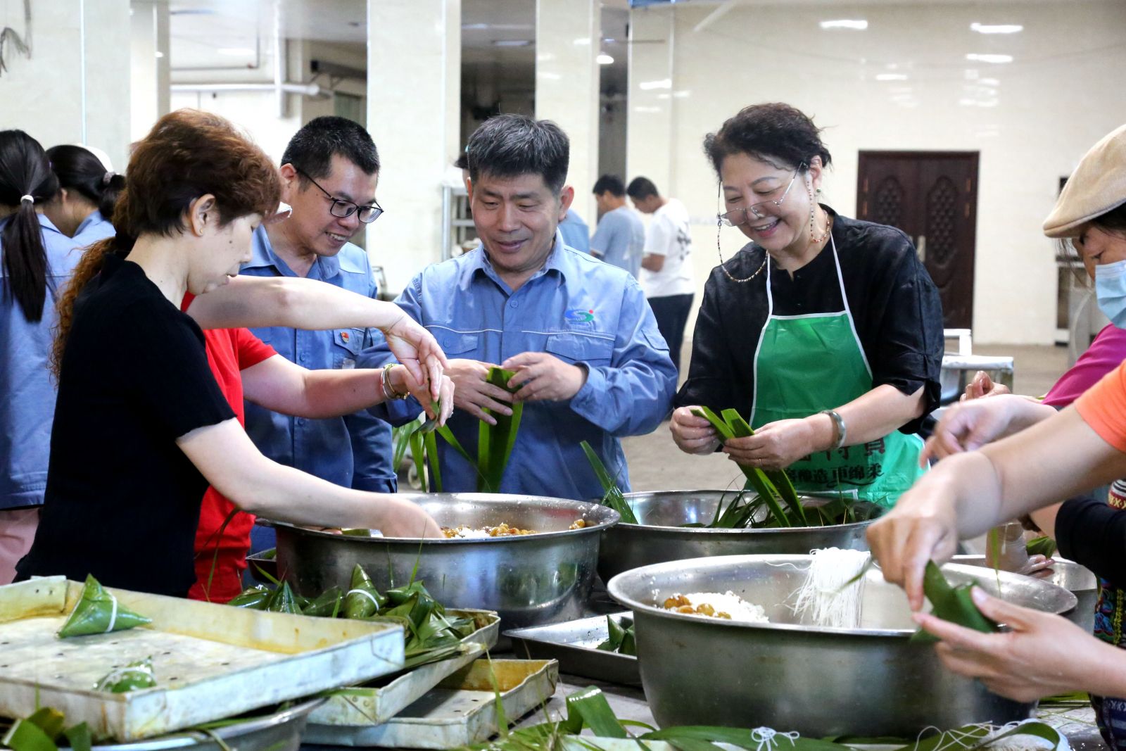 為保證活動(dòng)順利開展,公司物管中心提前做好食材的采購,并對(duì)上萬余片棕葉進(jìn)行煮熟晾干,300斤糯米進(jìn)行浸泡,100余斤蜜棗進(jìn)行清洗晾干。同時(shí),為了保證所有就餐職工每人兩個(gè)粽子的供應(yīng)量,堿業(yè)公司工會(huì)邀請(qǐng)23名內(nèi)退職工參與活動(dòng)。