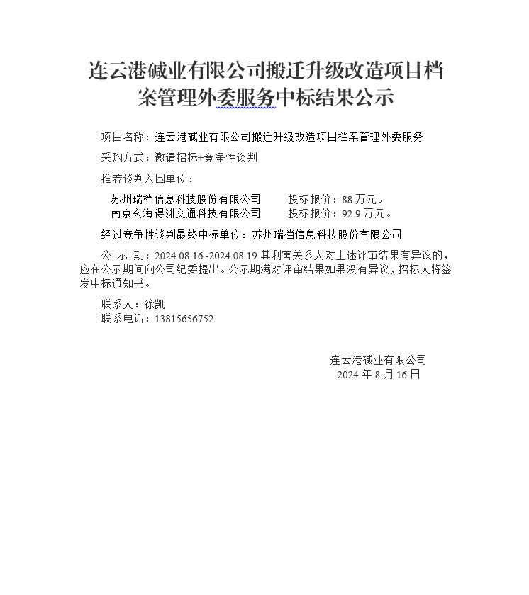 搬遷升級改造項(xiàng)目檔案管理外委服務(wù)中標(biāo)結(jié)果公示