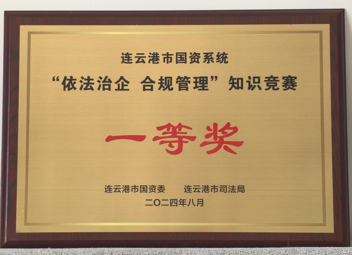 8月27日,由連云港市國資委、市司法局聯(lián)合舉辦的全市國資系統(tǒng)“依法治企合規(guī)管理”知識競賽決賽在連云港市廣播電視臺成功舉辦。我公司代表隊脫穎而出,榮獲一等獎。