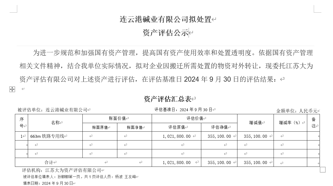 連云港堿業(yè)有限公司鐵路專(zhuān)用線資產(chǎn)評(píng)估公示